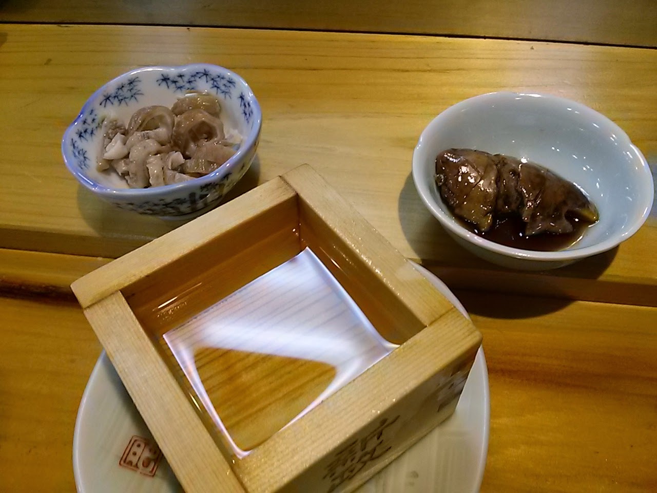 左上は平目の浮き袋湯引き 右は肝の煮付け